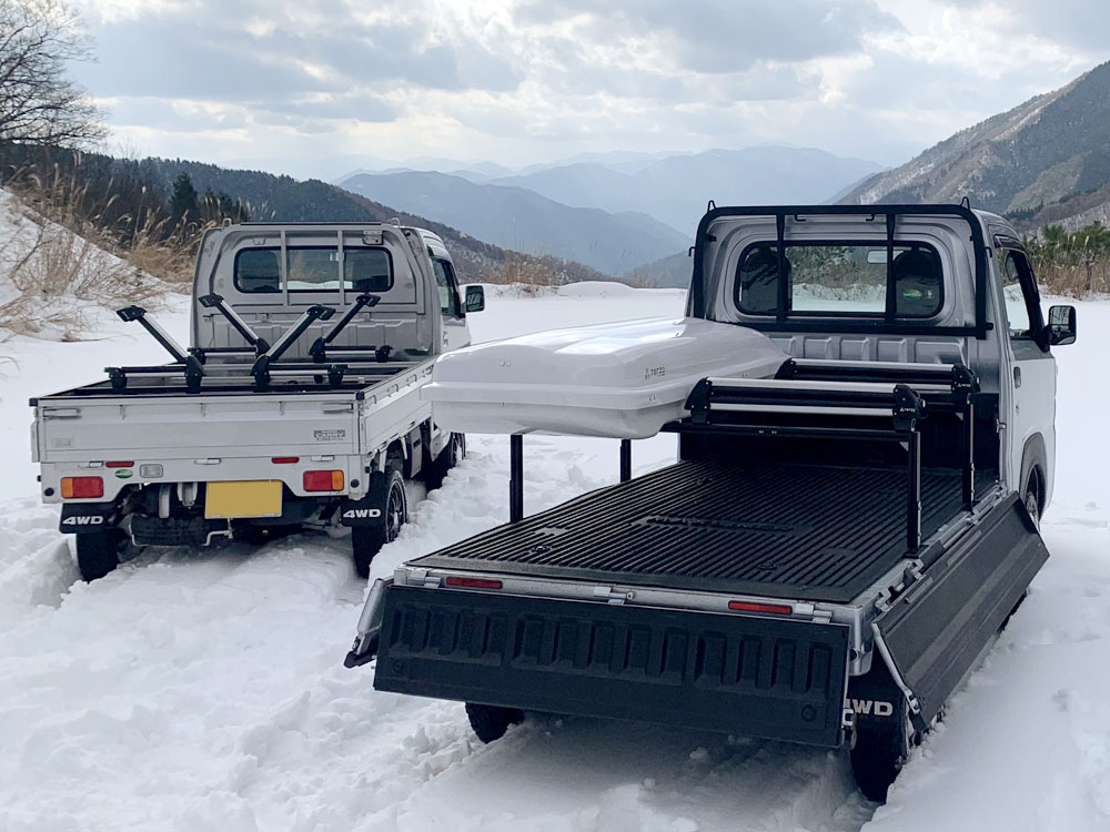 通常、軽トラに取り付けるキャリアは、荷台のフロアに穴をあけてボルトで固定するため、手軽に脱着ができない。そのため、農家の収穫物を積載する際には邪魔になるケースが多かった。