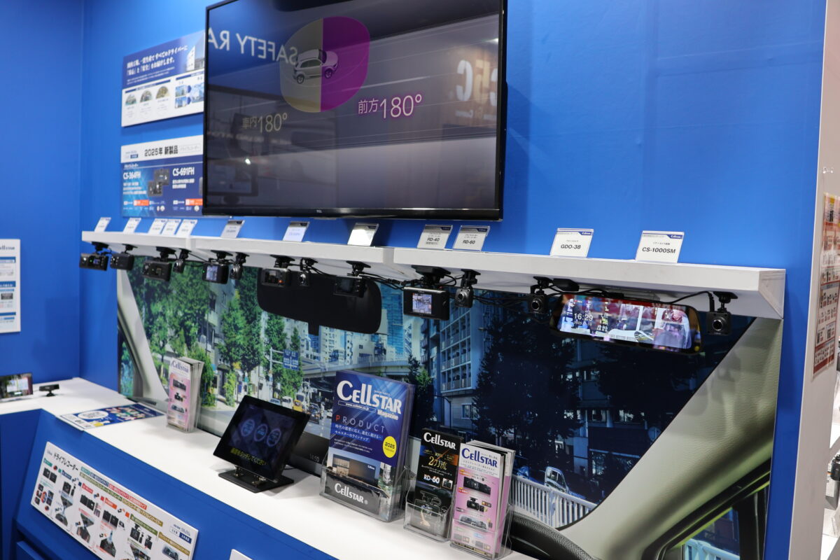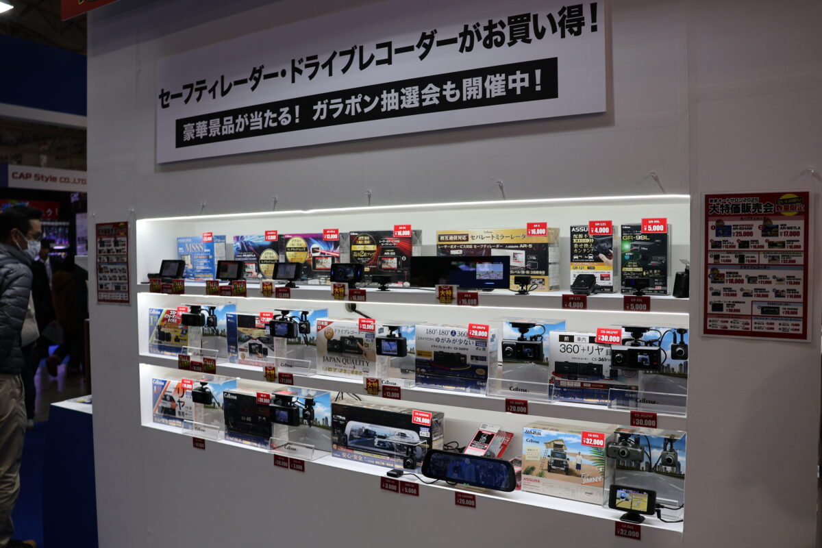 新製品のセーフティレーダー「AR-925AW」は新型取締機JMA-520/401に対応し、移動式オービスMSSSも受信可能。このほか、デジタルインナーミラー「CS-2000SM」は鮮明な視界を提供する。