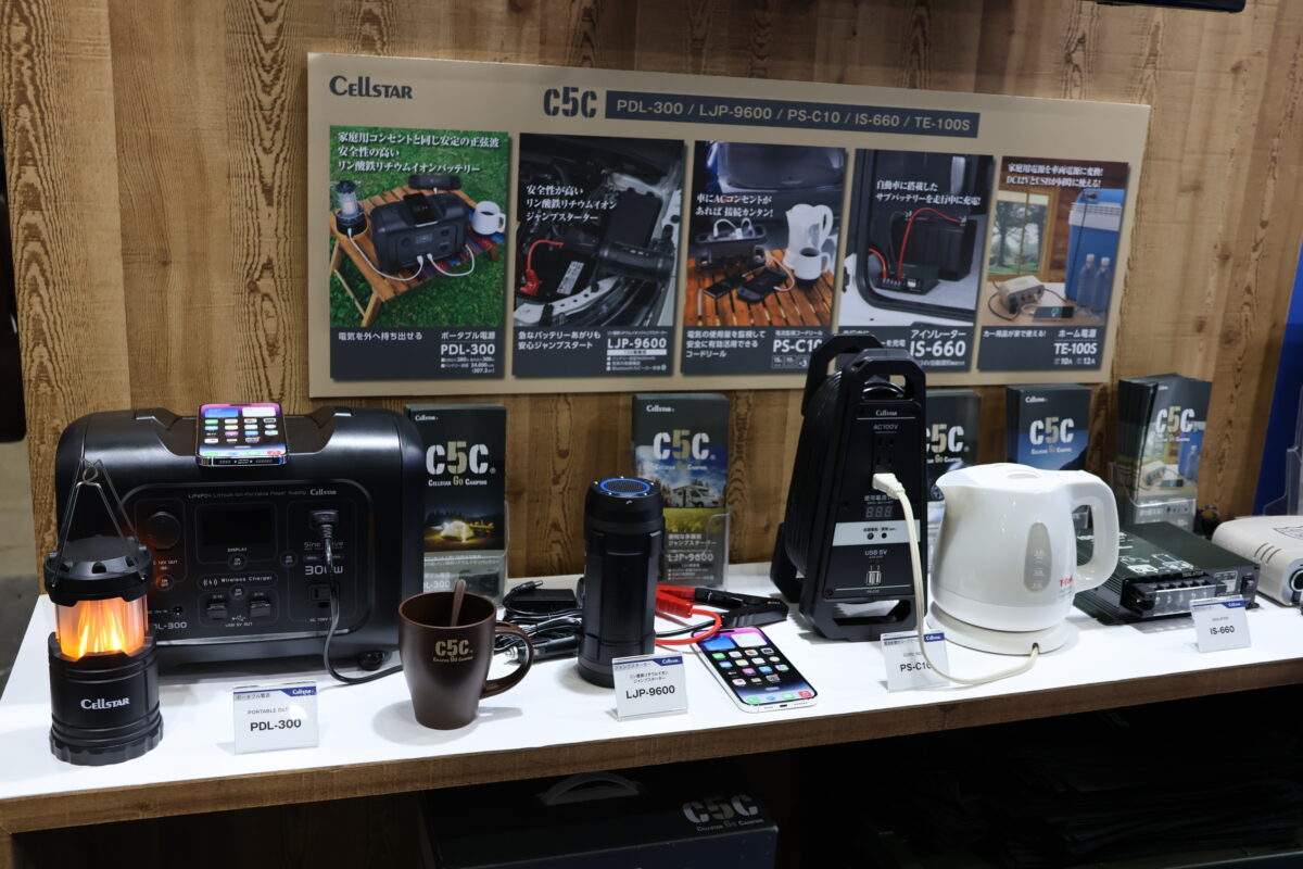 また、ジムニー専用モデルや電源製品「C5C」シリーズも並ぶなど、アウトドア向けの提案も幅広く展開していた。