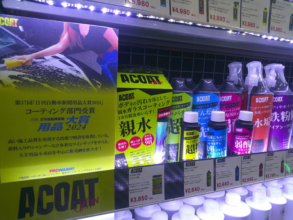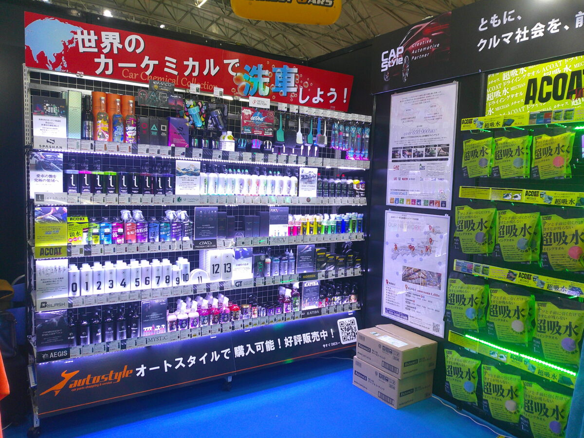 会場ではTERSHINEのセラミックコーティングスプレーやACOATの洗車用ケミカルを展示し、ハイレベルなボディケアを提案していた。