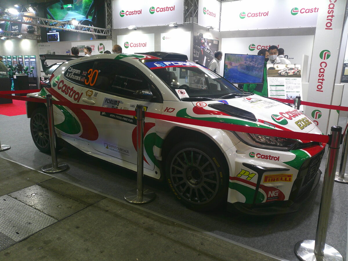 昨年のラリージャパンに出場した「ROOKIE Racing GR YARIS」を展示。実はこのクルマ、使用済みオイルを再精製したベースオイルRRBO(Re-Refined base oil)がエンジンオイルに使われている。コスパがよく性能面の問題がなく、何より環境負荷が少ないRRBO。ヨーロッパですでに普及しているこの技術が、日本にも導入される日は近い?