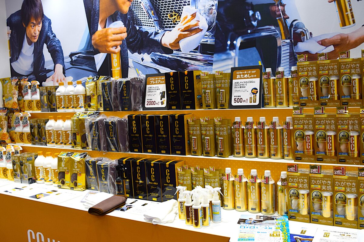 会場では「CC」シリーズを展示。CCウォーターゴールドやCCゴールドなどの高性能コーティング剤が並んだ。このほか、撥水効果を体感できるデモを実施するなど、DIY派から注目を集めていた。