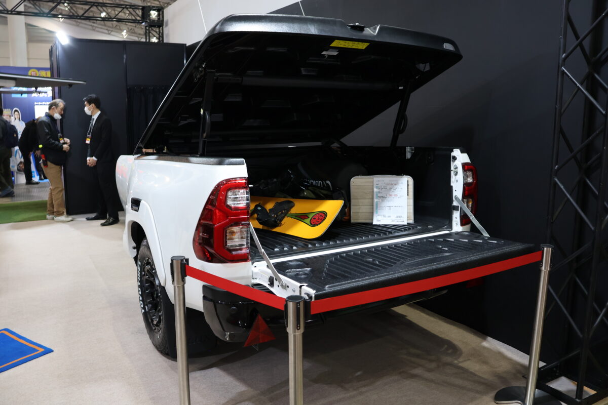 同社が会場に持ち込んだ車両は、トヨタ ハイエースのピックアップモデル。