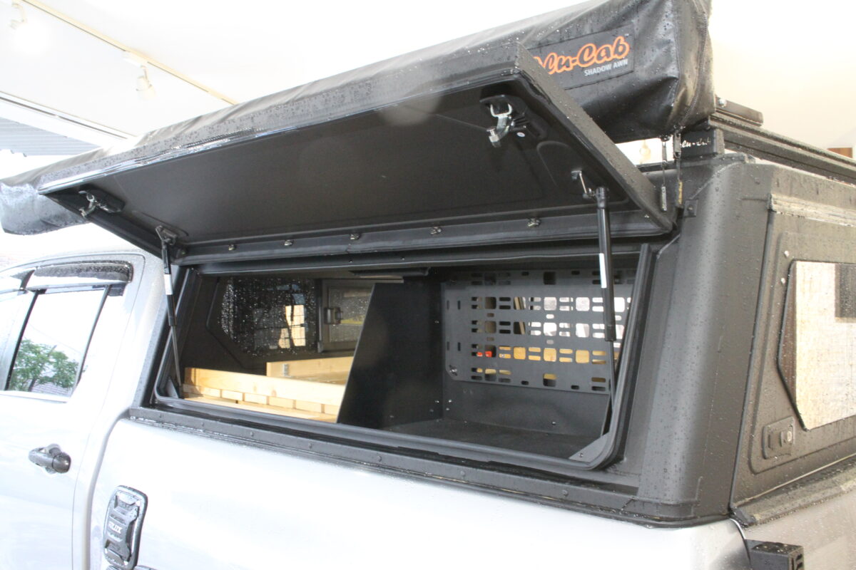 「キャンプをより快適に楽しむために荷台にAlu-Cab(アルキャブ)製キャノピーを取り付けたことです。荷物を雨で濡らしたくなかったので、使い勝手を優先したカスタムを意識しました」