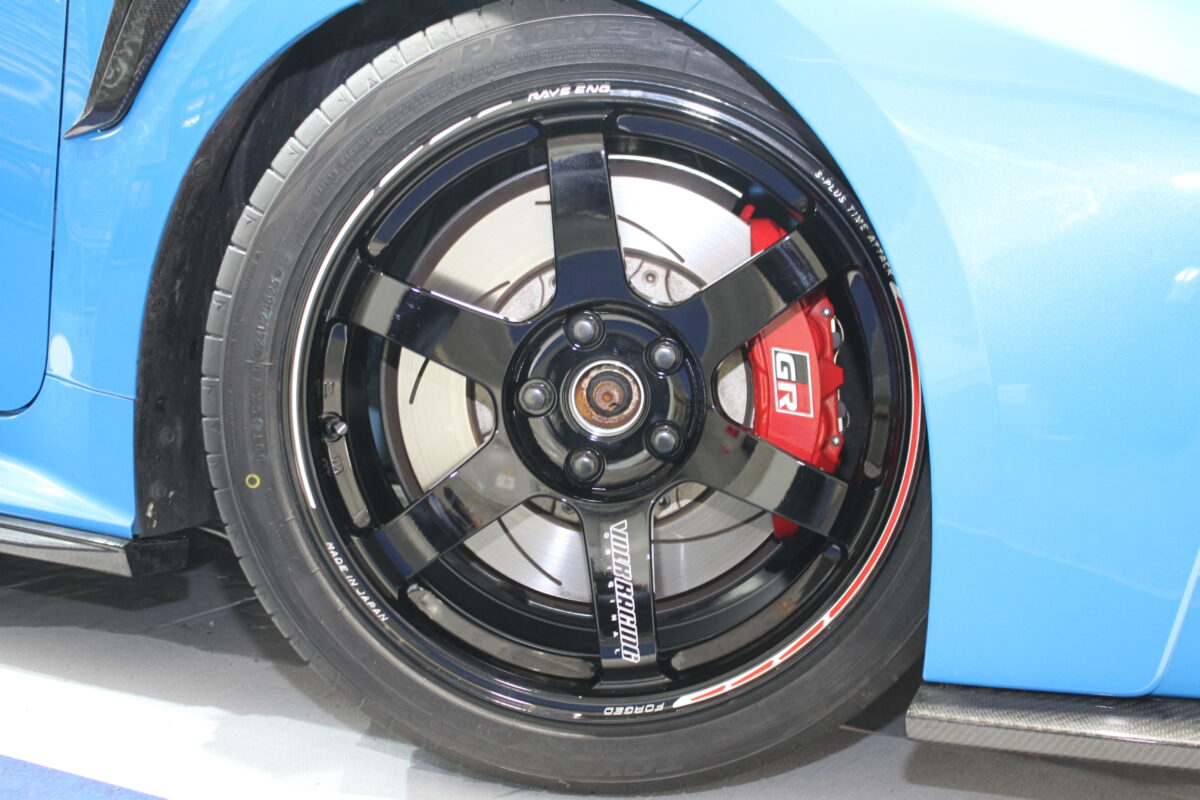 PROXESのブランド誕生35周年を記念したデモカー。世界限定50台というシアンメタリックカラーのGRカローラに「PROXES Sport 2」を装着する。高いハンドリング性能とブレーキ性能を両立させており、ウェットにおける制動力と路面追従性にすぐれるプレミアムタイヤだ。
