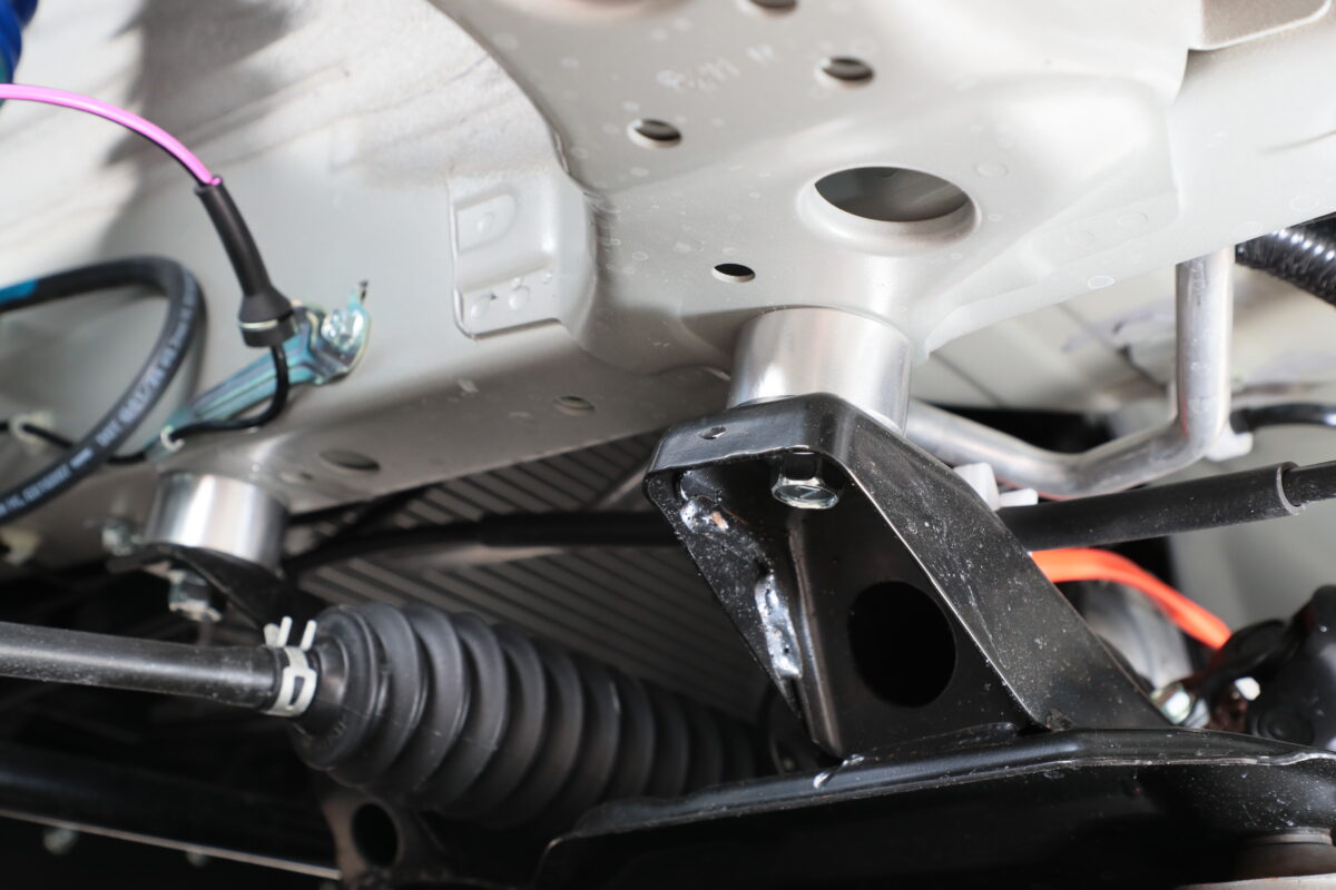 但東自動車ではフロントとリア、どちらにも単筒式と複筒式の2種類の車高調を用意。今回の撮影車両はフロントとリアに複筒式の全長式車高調を採用している。さらに、ドライブシャフト角度やプロペラシャフト角度、キャンバー角などを補正するスペーサーやアダプターもセットになっており、純正よりも乗り心地は向上しているのだ。