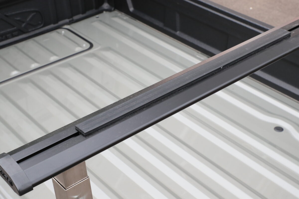 一般的な荷台フレームはボディへの穴あけ加工が必要になるケースが多い。しかし、トラレールでは荷台のアオリに挟み込むという画期的な構造を採用。ボディを傷つけることなく取り付けできるだけでなく、装着できるのが最大の特徴だ。