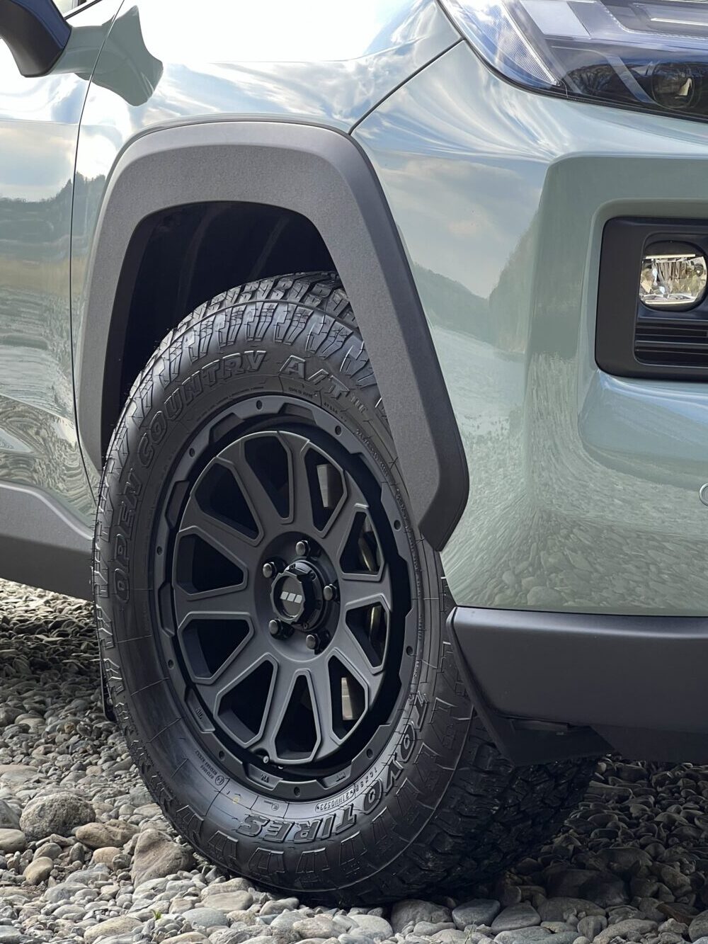 そこで注目したのが、アルミホイールメーカー「トライアルファ」から新たにリリースされた「レオウィング クロスヴェイル」。伸びやかな足長10本スポークに、ビードロックタイプデザインを融合した1本だ。堅牢なつくりに加え、アーバン系のスマートさと、オフロード系のワイルドさを両立するデザインが特徴。まさにオンとオフをカバーする1本だ。