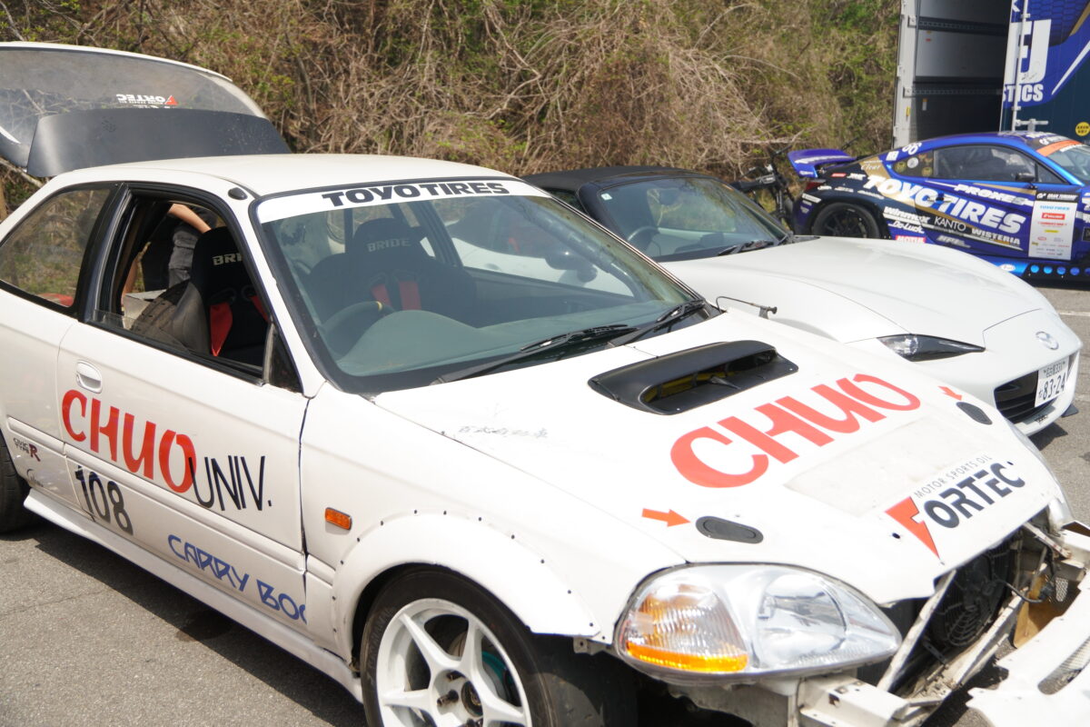 関東会場は4月19日、静岡県の富士スピードウェイ・ジムカーナコースで実施。参加した大学は19大学(青山学院大学、慶応大学、國學院大、工学院大学、駒沢大学、静岡大学、芝浦工業大学、聖心女子大学、専修大学、拓殖大学、中央大学、千葉工業大学、東京農業大学、都立大、東海大学、法政大学、早稲田大学、日本大学、横浜国立大学 ※五十音順) 、約400名近くにのぼった。