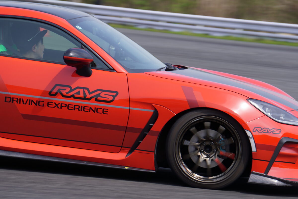レイズは、純正ホイールと同社製ホイールによる走行性能の違いを体感できる同乗走行プログラムを実施。ドライバーを務めたのは、イベントの司会も担当したモータージャーナリスト・竹岡圭さんだった。