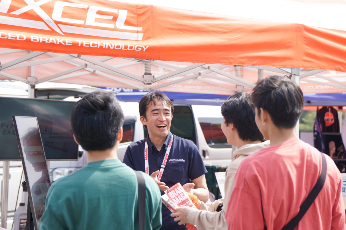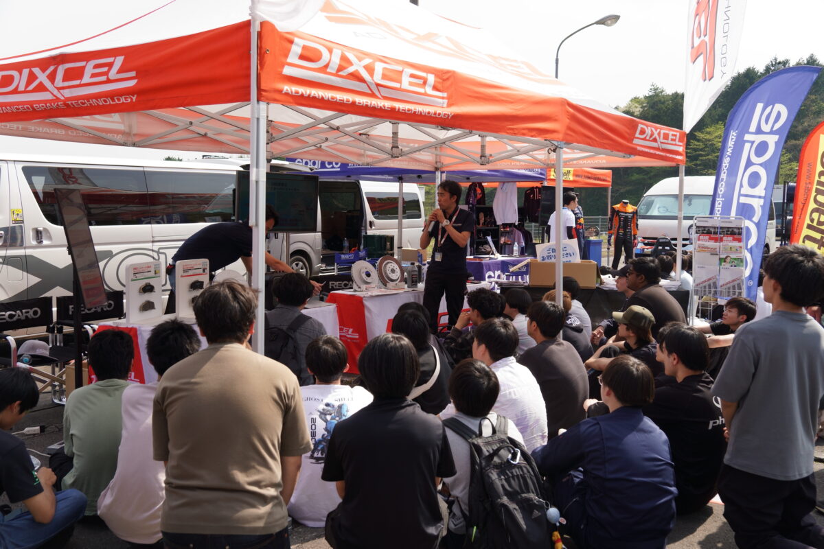 この説明会は、単なる就職活動の場ではなく、「自動車を通じて働くとはどういうことか?」をリアルに想像できる内容で構成されているのがポイント。高性能ブレーキパッド&ローターブランドのディクセルのブースでは、自動車部のOBである企画部広報課の金谷さんの話に学生たちは真剣な眼差しで聞き入っていた。