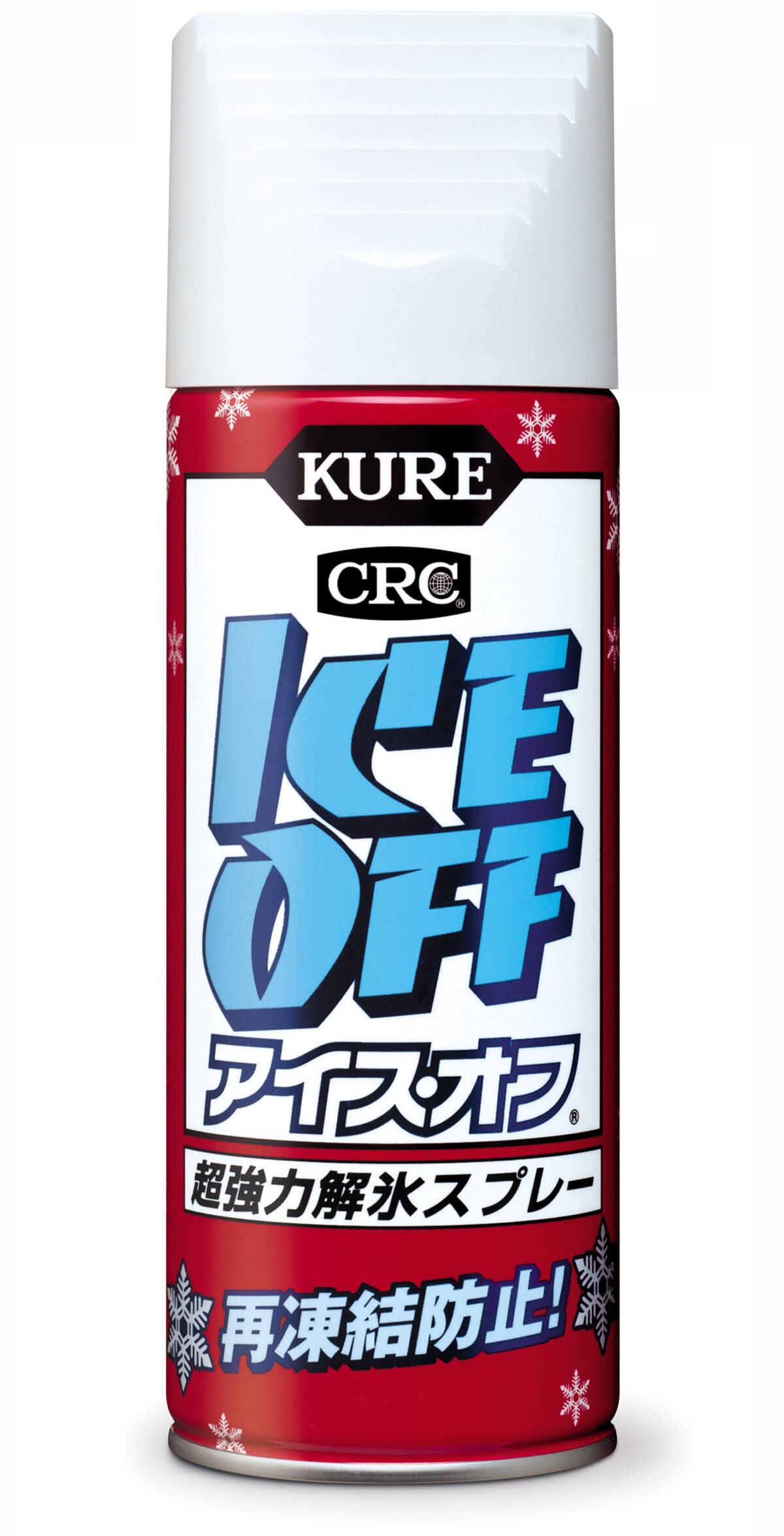 「アイス・オフ」は、フロントガラスの氷や霜を素早く溶かすスプレー。吹きかけて数十秒ほどで氷がみるみる融けていくため、スクレーパーでガリガリ削る必要もない。
