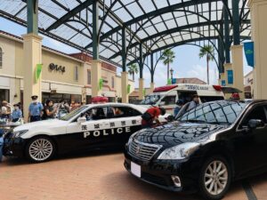 パトカーや消防車が大集合!お子様の記念撮影も「あつまれ!はたらくくるま inあみプレミアム・アウトレット」