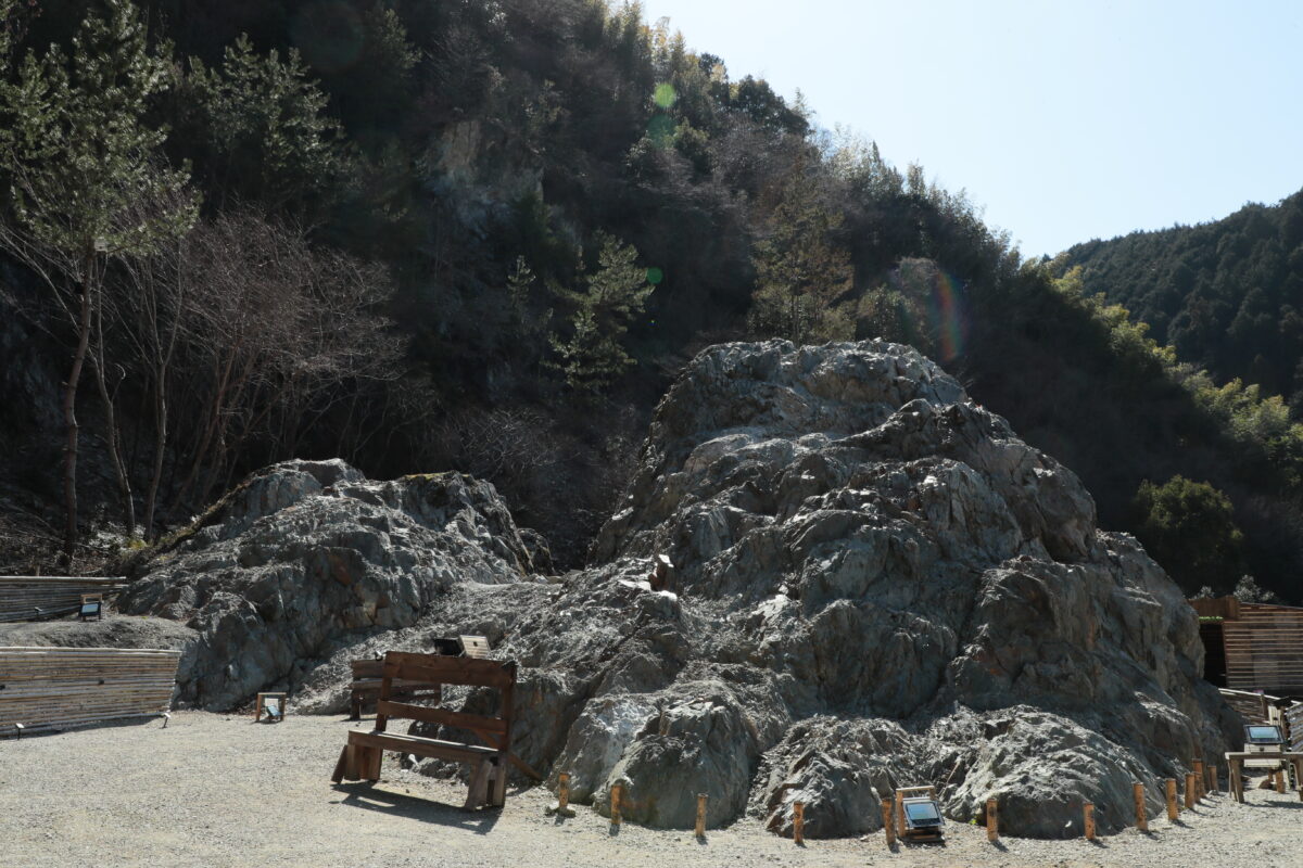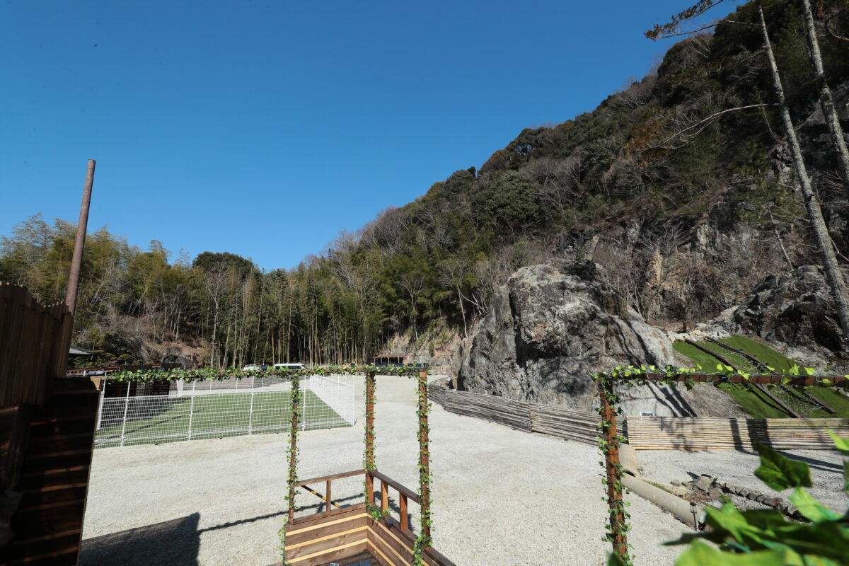 鬱蒼と茂っていた竹を切り出し、枯れ葉をのぞくと、突如現れたのが大きな岩だった。ならば、この岩をシンボルにしたキャンピング施設をつくったら面白いのではないか? そう考えた桑原氏は、さらに愛犬家からの意見を取り入れることで、他にはないロックリゾートのスタイルが仕上がったという。