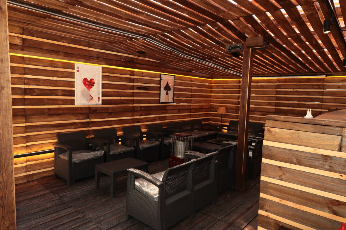 さらに、スタイリッシュなカフェ&バーも併設。80年代の映画に出てくるカフェをイメージして仕上げたという室内には、間接照明のなかカウンター5席とローテーブルには20席が並ぶ。日帰りドッグランの入れ換え時や、デイキャンプでBBQを楽しんだ人たちが、帰宅前にゆっくりできる場所になる。