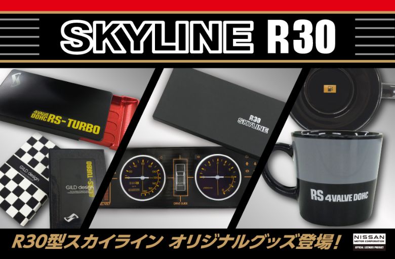 誕生から40年を越えた日本を代表する名車『スカイライン』の6代目となるR30型スカイラインをモチーフにしたオリジナルデザインのグッズである。
