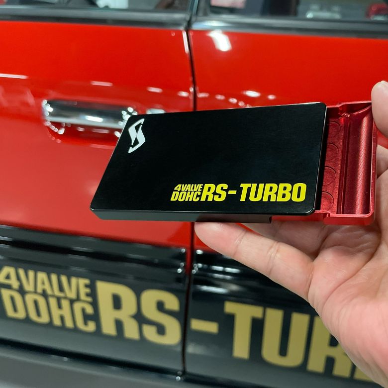 “4 VALVE DOHC RS-TURBO” ジュラルミン削り出し名刺ケース