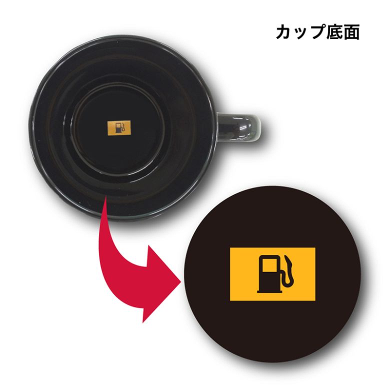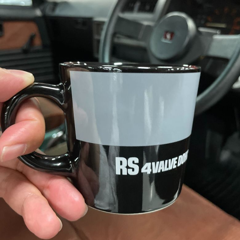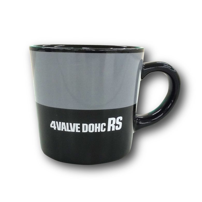 特徴:「スカイライン 2000RS」の特徴をデザインしたマグカップである。ブラックとグレーのツートーンカラーのボディーに「4VALVE DOHC RS」のロゴをデザインしている。飲み物が無くなるとマグカップの底面にエンプティマークが現れる。