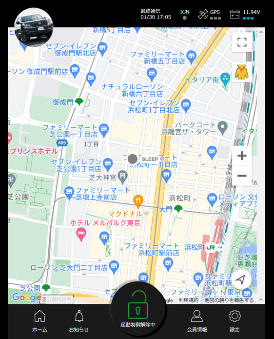 - 万一の盗難時にはセキュリティ本体のGPS機能により車両の現在地を追跡可能