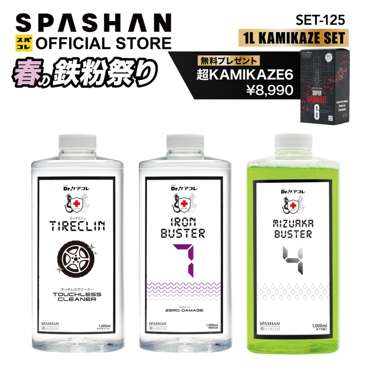 商品名:スパシャン セット アイアンバスター7 1L・水アカバスター4 1L・タイヤクリン 1L( 超カミカゼ6 プレゼント)