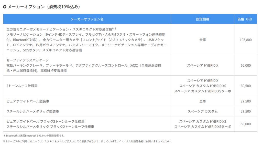 - ドライブレコーダー連動、HDMI入力対応、スズキコネクト連携機能を新たに搭載した、スマートフォン連携メモリーナビゲーションをメーカーオプションとして設定しました。