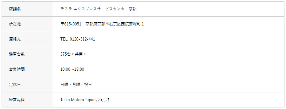 株式会社オートバックスセブン(代表取締役 社長執行役員:堀井勇吾)と加盟店契約を結んでいる株式会社オートバックス関西販売(代表取締役:佐々木勝)が運営するオートバックスグループのフラッグシップ店舗「A PIT AUTOBACS KYOTO SHIJO(京都府京都市)(以下、A PITオートバックス京都四条)の店舗内に、Tesla Motors Japan合同会社(以降、テスラモーターズジャパン)が運営するサービス拠点「テスラ エクスプレスサービスセンター京都」が新テナントとしてオープンいたしましたのでお知らせします。