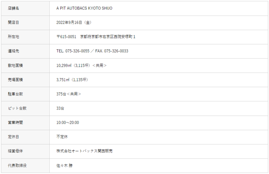 A PIT AUTOBACS KYOTO SHIJO店舗内にオープン