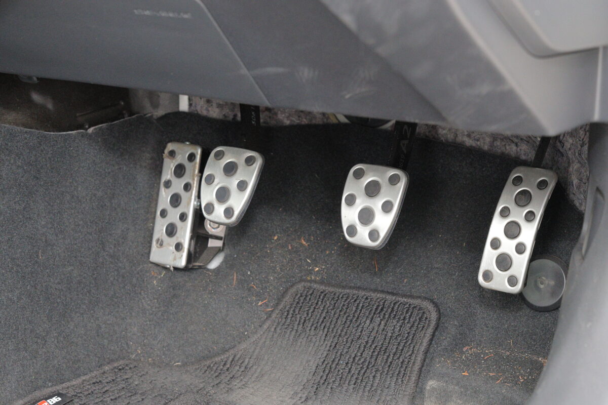 TEAM UPGRAGEのシフトノブ、アルミのペダルカバーがスポーティーなイメージを演出。
