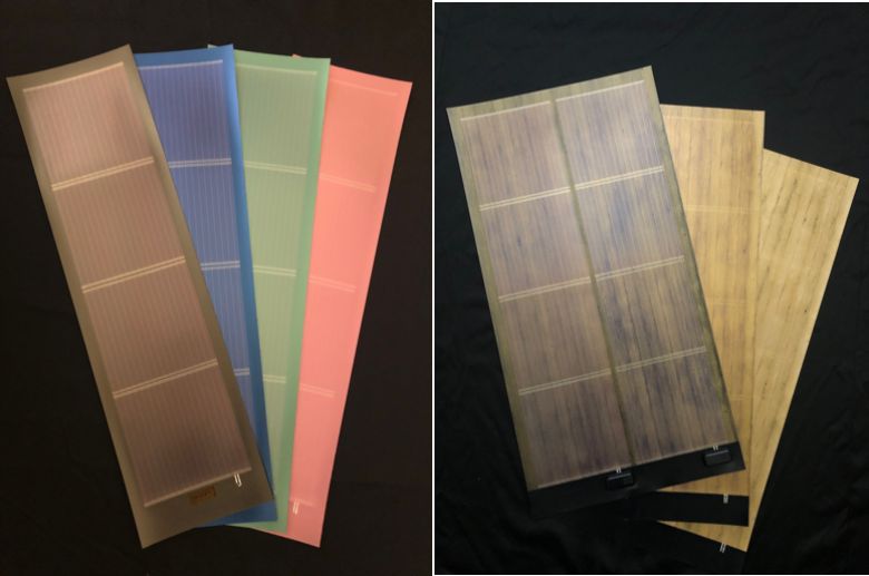 この加飾フィルムは、幅広いカラーバリエーションを持つため、軽量な太陽電池に装着すれば、店舗や家屋壁面、モビリティの外板などへの搭載が期待される。また、シート状の太陽電池に装着すれば、将来、衣類や鞄、アウトドアグッズに搭載し、歩きながら発電することも期待できる。
