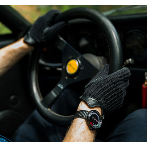新作のVALLELUNGA AUTOMATICは、1960年代のレーシングマシンに備えられたメーター(計器)類をイメージした文字盤をベースに、ケース径は当初の42mmから、よりコンパクトな40mmに縮小され、ムーブメントは自動機械式へ変更、さらに針のデザインが最新のものにブラッシュアップされています。文字盤は全部で3カラー。普段使いからフォーマルまで対応できるデザインですので、どのシチュエーションにおいても、さりげなくクルマ好きであることをアピールできるはずです。