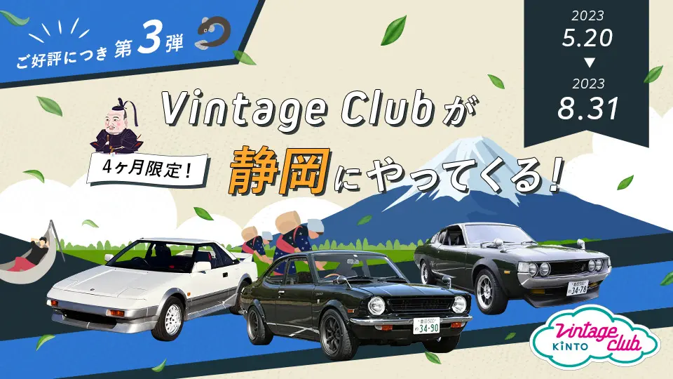 株式会社KINTO(本社:愛知県名古屋市、代表取締役社⻑:小寺 信也)は、旧車コミュニティ「Vintage Club by KINTO」で、昨年東京から実施し各地でも好評を博している”旧車キャラバン”の第3弾を、静岡で実施することを決定いたしました。