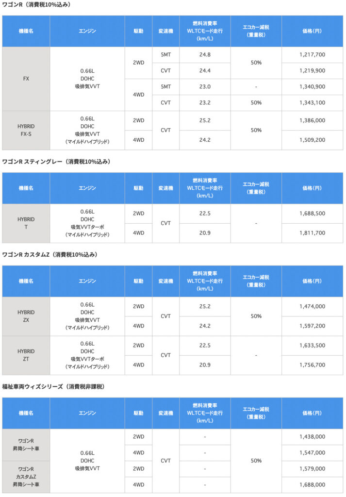 *ワゴンR FX、ワゴンR 昇降シート車、ワゴンR カスタムZ 昇降シート車を除く