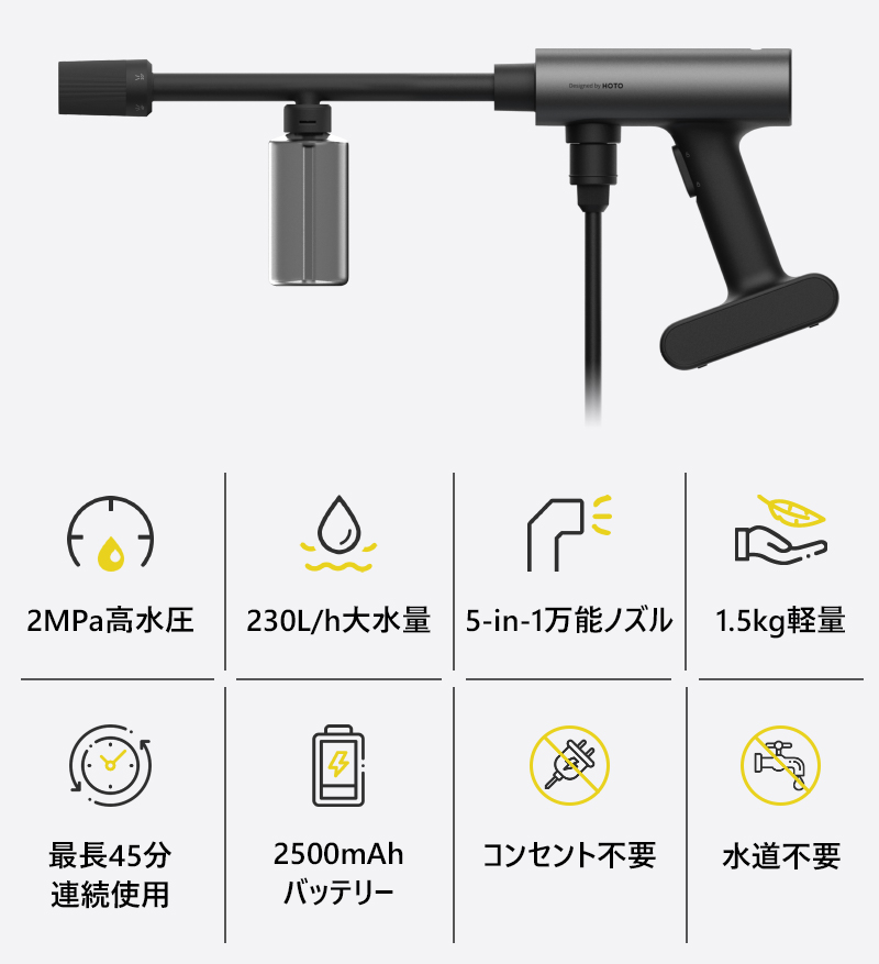 軽量&強力&USB充電。実用性もデザイン性も進化したHOTO高圧洗浄機の新モデルがマクアケに登場!