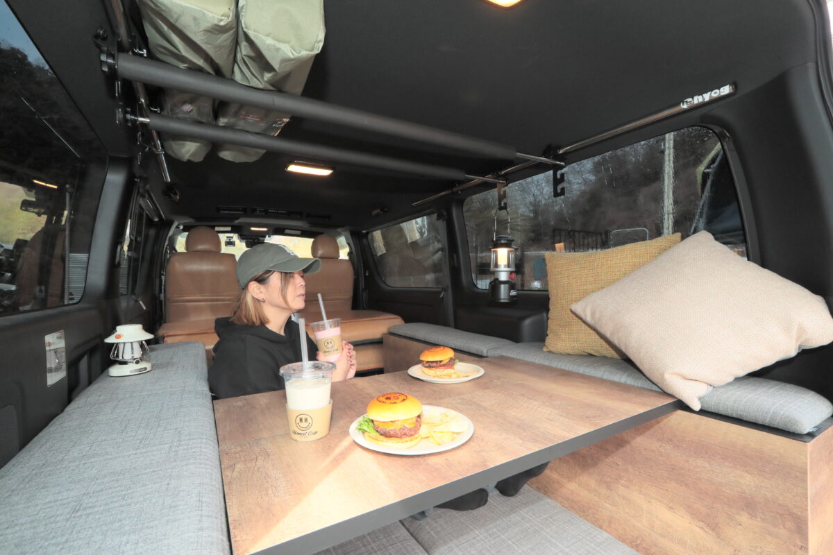 ベッドマットを床に敷いたお座敷スタイルが新しい!ハイエースの荷室が3パターンで遊べる“くつろぎ空間”となる「LIT-B LOW style」に注目!