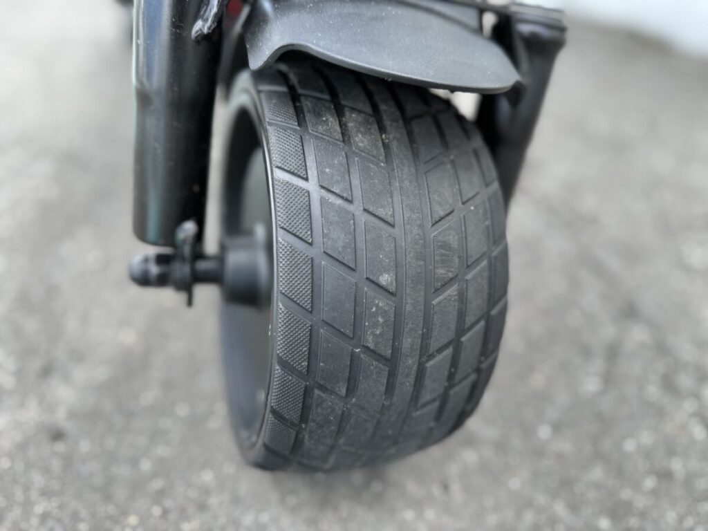 これにより走行中の安定感を大幅にUPさせ、ちょっとした縁石などに引っ掛かって転倒するリスクを軽減させました。また、歩道走行の際は時速6km以下になりますので低速でも安定します。