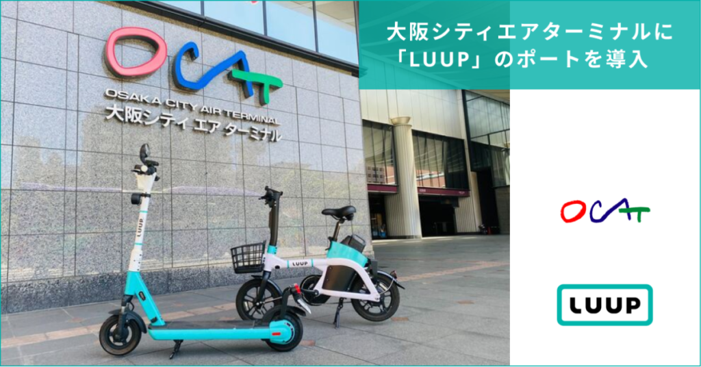 株式会社Luup(本社:東京都千代田区、代表取締役社長兼CEO:岡井大輝、以下「Luup」)は、株式会社湊町開発センター(代表取締役:間渕豊)が所有する大阪シティエアターミナル(所在地:大阪府大阪市浪速区湊町1丁目4−1、略称「OCAT」)に、電動マイクロモビリティのシェアリングサービス「LUUP」のポートを導入したことをお知らせします。