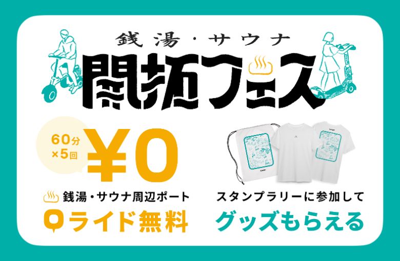 〜銭湯サウナ施設周辺ポートが60分5回までライド無料!スタンプラリーでLUUPオリジナルグッズがもらえる〜