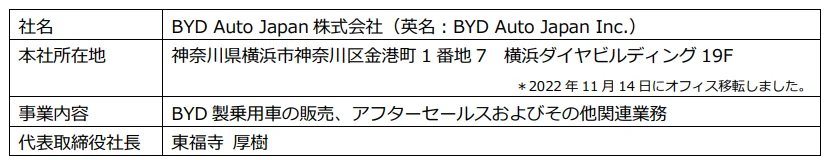 BYDの日本法人 ビーワイディージャパン株式会社の100%出資子会社として設立したBYD Auto Japanは、日本におけるBYDの乗用車販売サービス専業会社です。