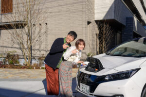私たち夫婦も今回、初めて電気自動車を体験させていただきました。何より驚いたのは、スムースで魅力的な走り心地に感動しました。そしてZEHマンションに足を踏み入れたのも初めてだったのですが、先進的で生活がアップデートされる感覚がとても楽しかったです。私たち夫婦は自分達の所有するマンションで暮らしているのですが、集合住宅にEVのある暮らしのメリットもクイズ形式でとても楽しく学ぶことができ、撮影が終わってからも『First Step診断』の結果を夫婦で話しながら、「今後、この家で電気自動車とあんな暮らしがしたいね。」と話をしていました。今回の映像がEVやEVのある暮らしの魅力を知ってもらうきっかけになれば嬉しいですし、私たち同様に今の住環境でEVを諦めなければ行かないと考えていた方も「へこむわー」ではなく、『First Step診断』をしていただき、自分に合ったファーストステップをすすめていただけたら「言ってるそばからソッコー元気」になれますよ。