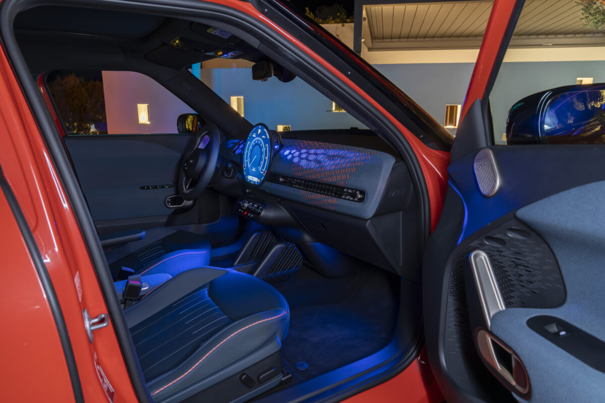全車標準装備のMINIエクスペリエンス・モードにより、新型MINI ACEMANでは、インテリアの雰囲気を一変させることが可能である。ダッシュボード上に最大8パターンの光のグラフィックを投影させることで、光のパターンとアンビエント・イルミネーション、そして新たに作られたMINIドライビング・サウンドによりインテリア全体の印象が変化する。各モードのそれぞれのデザインにはダイナミックな背景があり、個人の好みに応じて選択することが可能である。これらの新たな機能は、個性を活かす手段ともなり、例えば、パーソナル・モードでは、お気に入りの画像をディスプレイの背景に設定することができ、また、ビビッド・モードを設定すると、流れている音楽のカバー・アートの色に合わせたライト・エフェクトが25色の中から自動で選定され、ダッシュボード上に投影される。この新たな没入感のあるユーザー体験により、新型MINI ACEMANのインテリアにさらなる表現力を与えている。