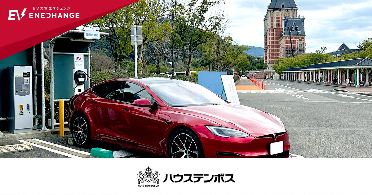 ENECHANGE株式会社は、長崎県佐世保市のテーマパーク「ハウステンボス」の駐車場にエネチェンジのEV普通充電器を2口設置し、サービスの提供を開始したと発表した。