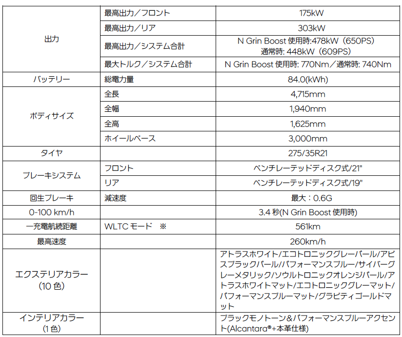 ・最高出力478kW(650PS)*、84kWh大容量バッテリー搭載 *N Grin Boost 使用時