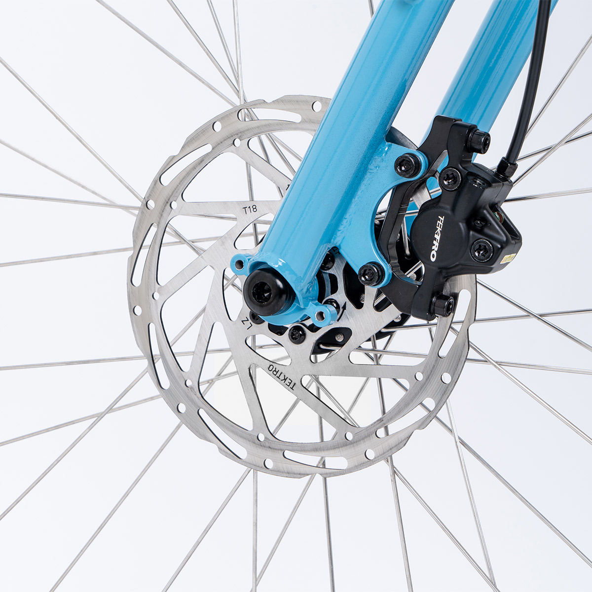 - 軽い力で作動し、操作性に優れた油圧ディスクブレーキを搭載。雨天での走行も安心。