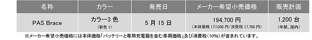 「PAS Brace」のコンセプトは、「日常使いしやすいスポーティコミューター」で、メインターゲットは通勤用の電動アシスト自転車としてスポーティな外観と走行性能を求める男性です。