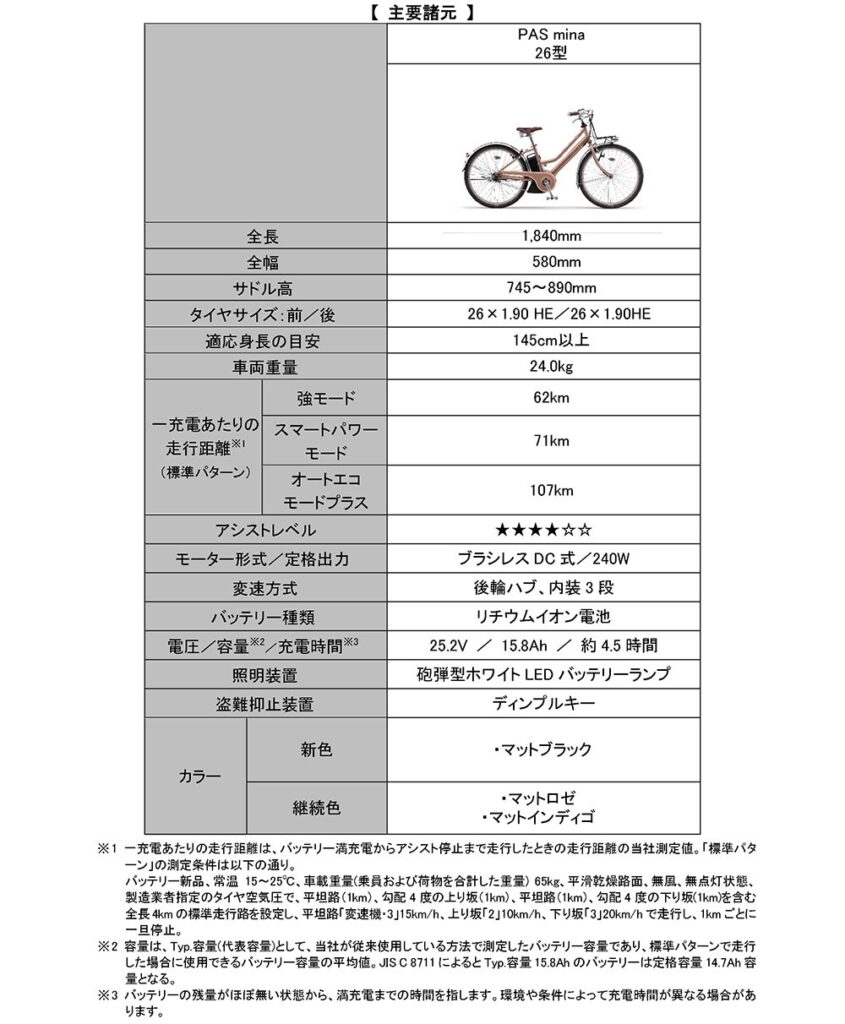 ヤマハ発動機株式会社は、ファッショナブルなシティタイプの電動アシスト自転車「PAS mina(パス ミナ)」の2024年モデルを、2024年2月20日に発売すると発表した。