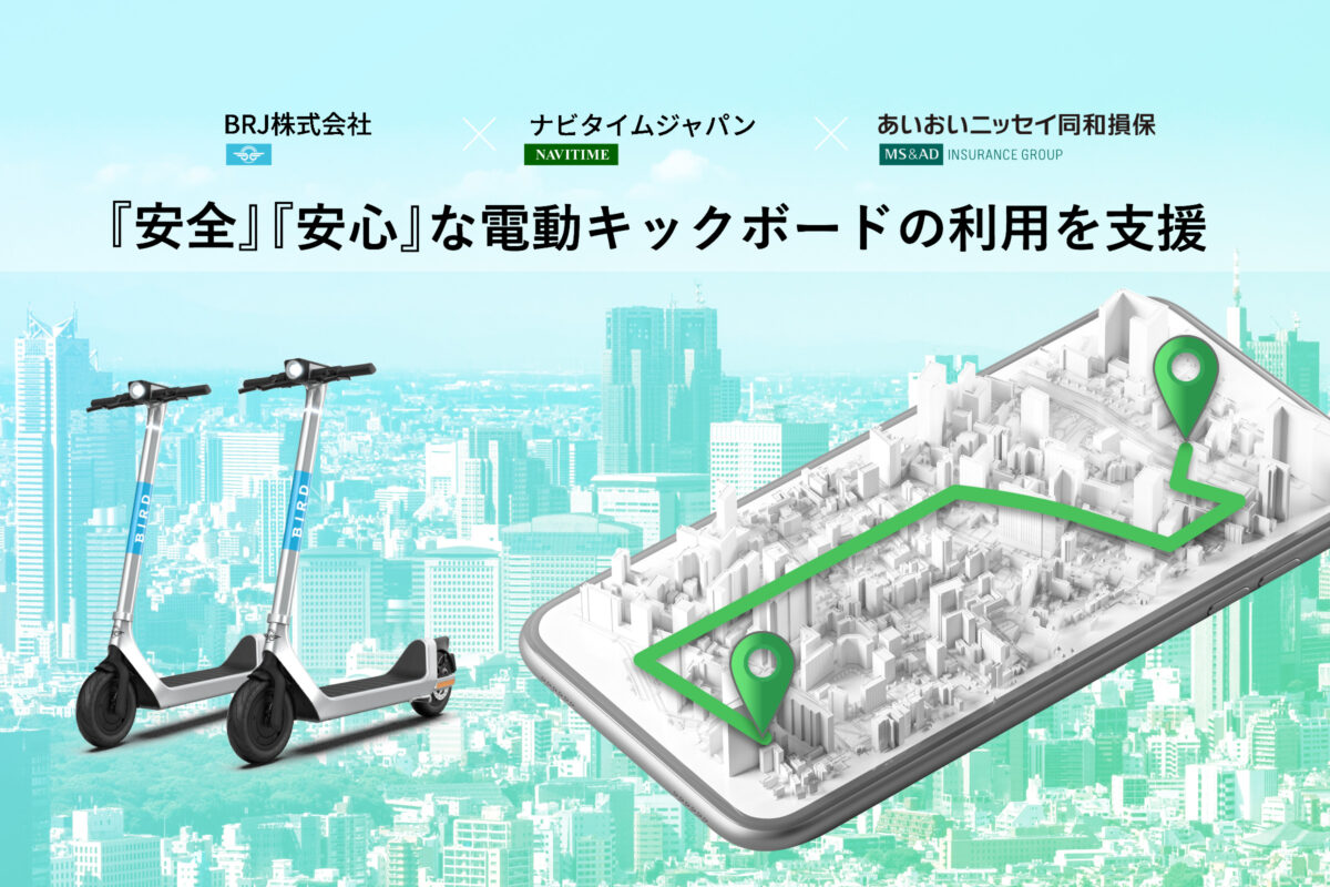 「BIRD」を日本で展開するBRJ株式会社は、あいおいニッセイ同和損害保険株式会社と株式会社ナビタイムジャパンと共同で、2023年6月1日より電動キックボード専用ナビゲーションシステムの実証実験を開始した。