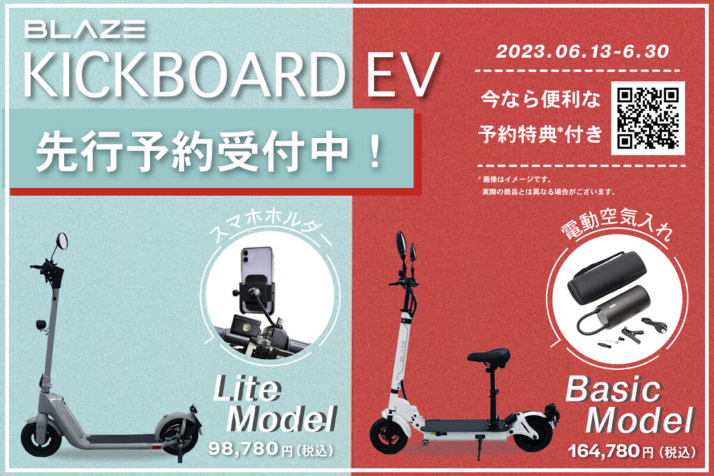株式会社ブレイズは、2023年7⽉1⽇に施行される新しい交通ルールに対応する電動キックボード「KICKBOARD EV(キックボードEV)」の2モデルを新発売する。同時に、同製品の第1次予約受付を、2023年6⽉13⽇(火)より開始した。