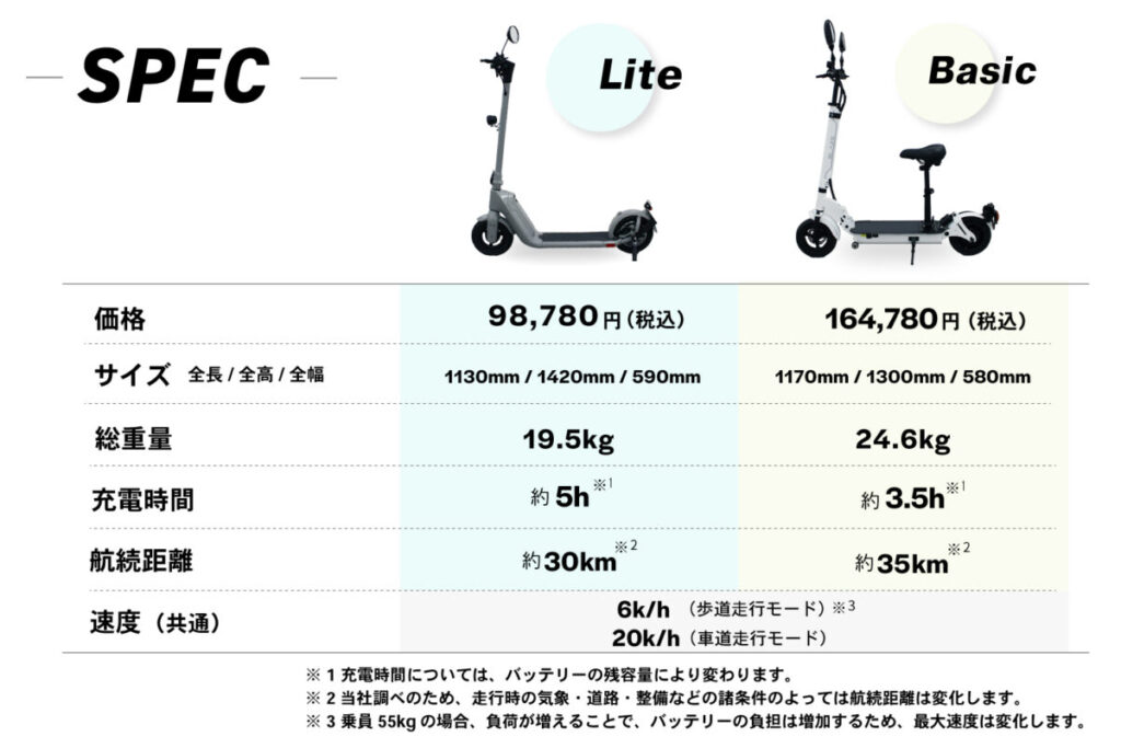 ブレイズは、特定小型原付カテゴリにおいても、幅広い層のお客様の多様な⽤途に合わせてお選びいただけるよう、「KICKBOARD EV(キックボードEV)Lite(ライト)モデル」、および同「KICKBOARD EV Basic(ベーシック)モデル」の2つのモデルをご⽤意いたしました。