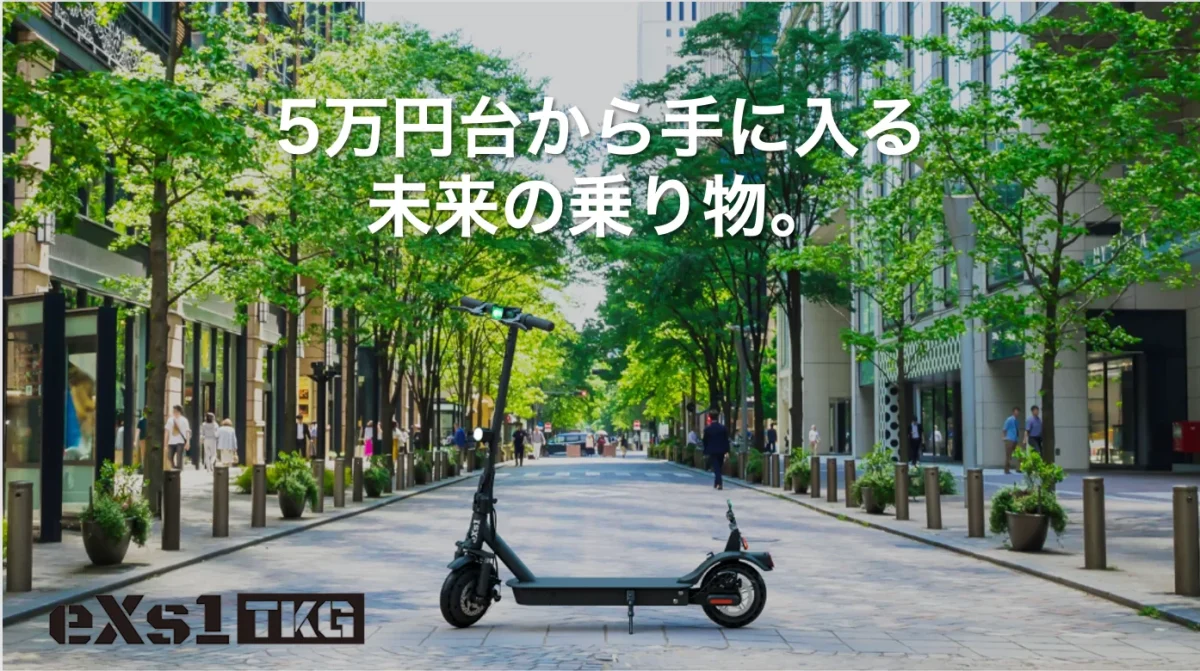 MONOQLO(モノクロ)誌でベストバイに輝いた、今なお人気を集める一般原付の電動キックボード『eXs1(エクスワン)』を、2023年7月1日の法改正に合わせ、特定小型原動付自転車『eXs1 TKG(エクスワンティーケージー)』にアップデート。