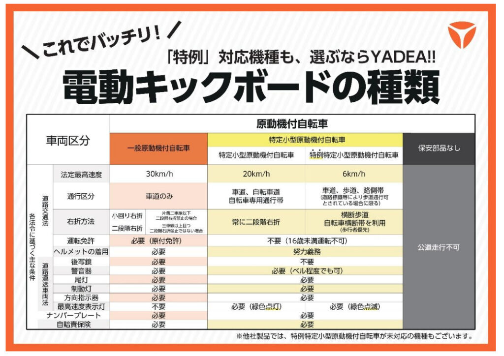 ※特定原付だけの機体は、あくまで車道のみ走行になりますのでご注意ください。